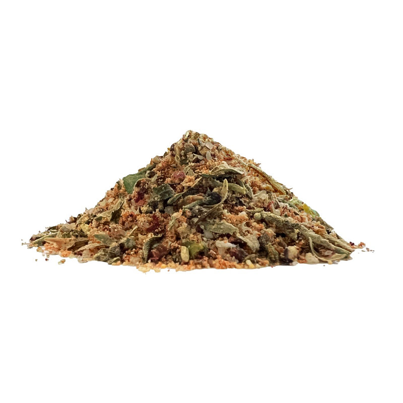 Unser Mediterraner Bums bringt dir den intensiven Geschmack von Kräutern und Gewürzen rund ums Mittelmeer raffiniert gepusht mit Datteln, Sumach und Olivenflocken: Süß, sauer, salzig, kräutrig-würzig und UMAMI in einer Mischung vereint.